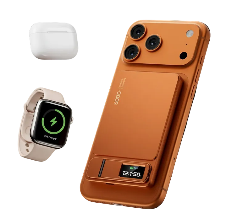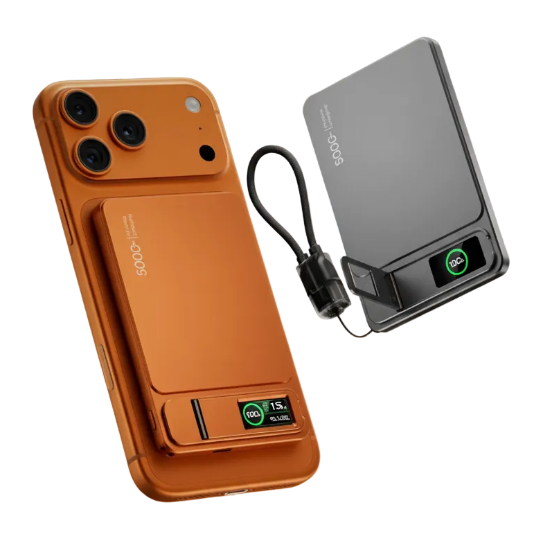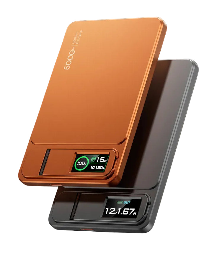 Keep your Apple devices powered all day with this innovative Pro Series MagSafe power bank. Choose between 5000mAh (124g) or 10000mAh (182g) capacity to match your lifestyle. Featuring intelligent 20W wired and 15W wireless fast charging, it seamlessly powers iPhones, Apple Watches, and AirPods with automatic iOS recognition. The slim profile houses advanced Li-Polymer technology, while the built-in kickstand and 2-in-1 lanyard cable combo enhance portability and usability. Monitor charging progress on the dynamic TFT display and enjoy multiple charging modes at a glance. Internationally certified and TSA-approved for travel, this power bank combines premium engineering with everyday practicality.